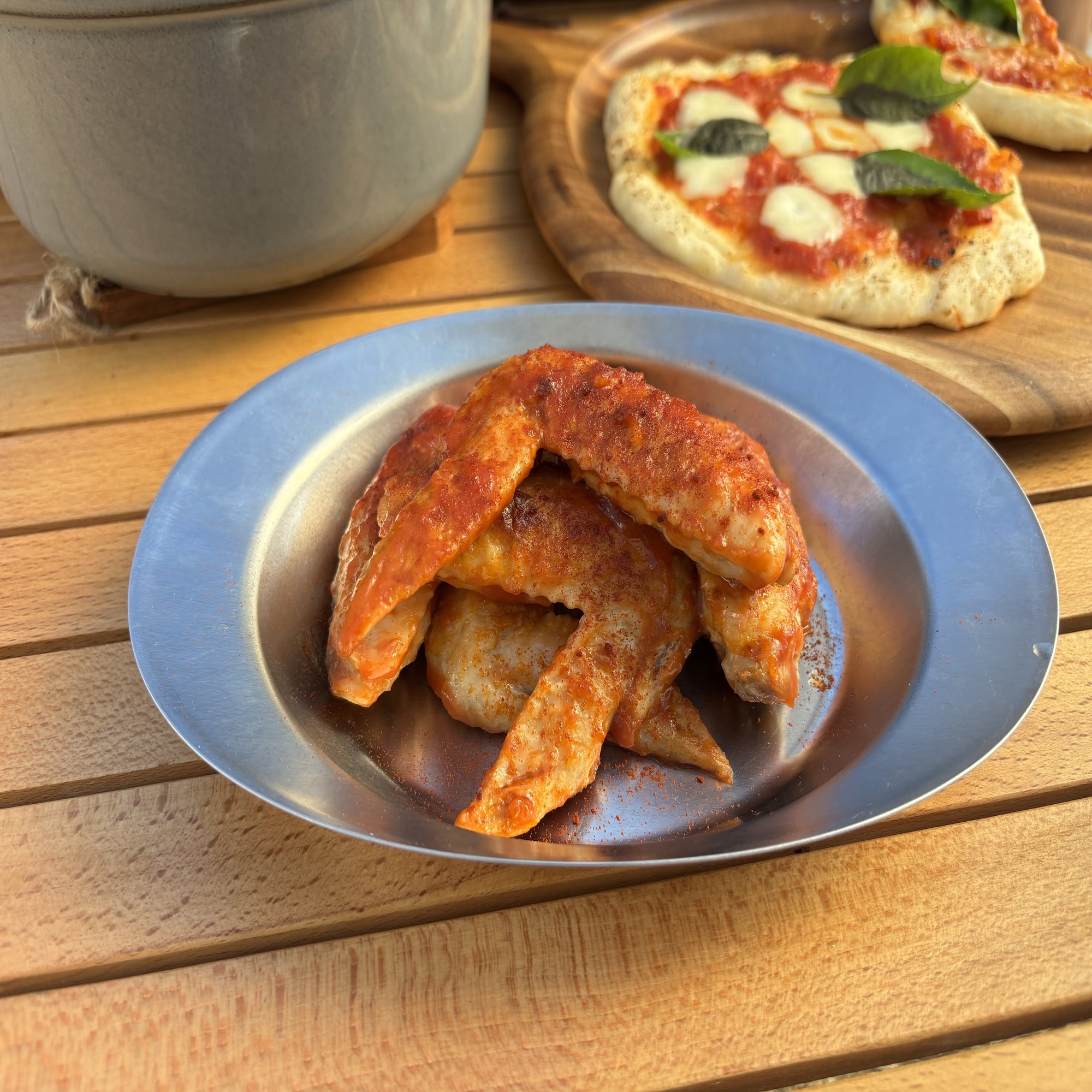 「バッファローウイング」はアメリカの手羽料理です。ピリ辛とバターのコクがあるソースに絡めます。ビールがすすむ!!(私は激弱ですが、飲みサークル出身です😂)